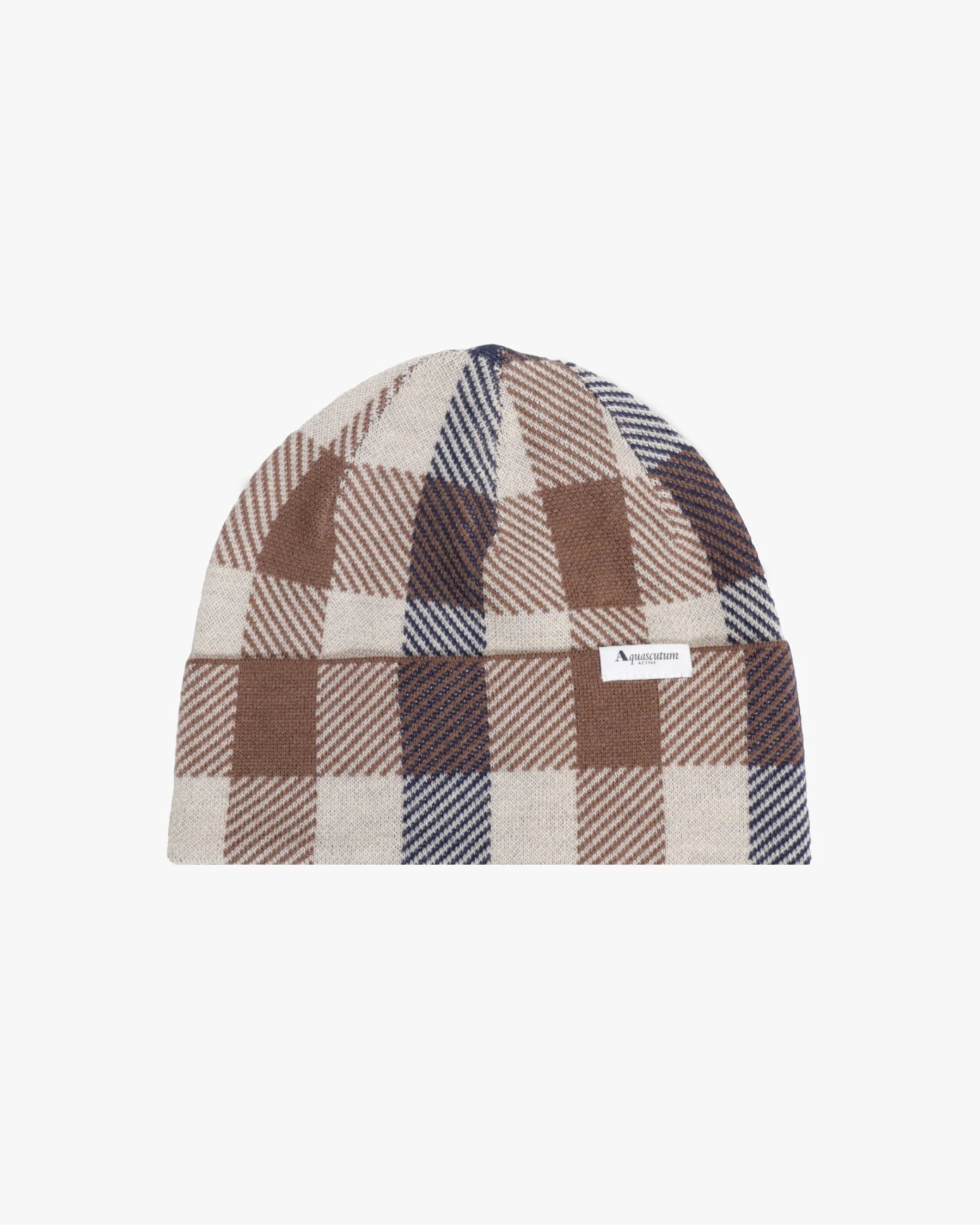 Featuring a bold Macro Club Check knit, this beanie makes a statement while maintaining subtle sophistication. A woven logo label on the front adds signature Aquascutum branding. Designed with a regular fit and one-size-fits-all sizing, it pairs effortlessly with jackets, scarves, and casual winter outfits.