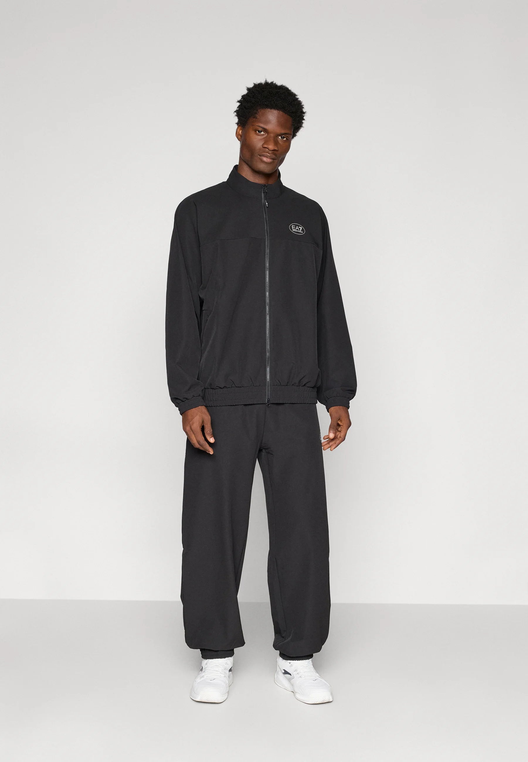 The zip-up jacket features a stand collar, full zip fastening, and two side pockets for a clean and practical look, finished with the EA7 logo on the chest and Eagle emblem at the back for a bold yet refined finish.