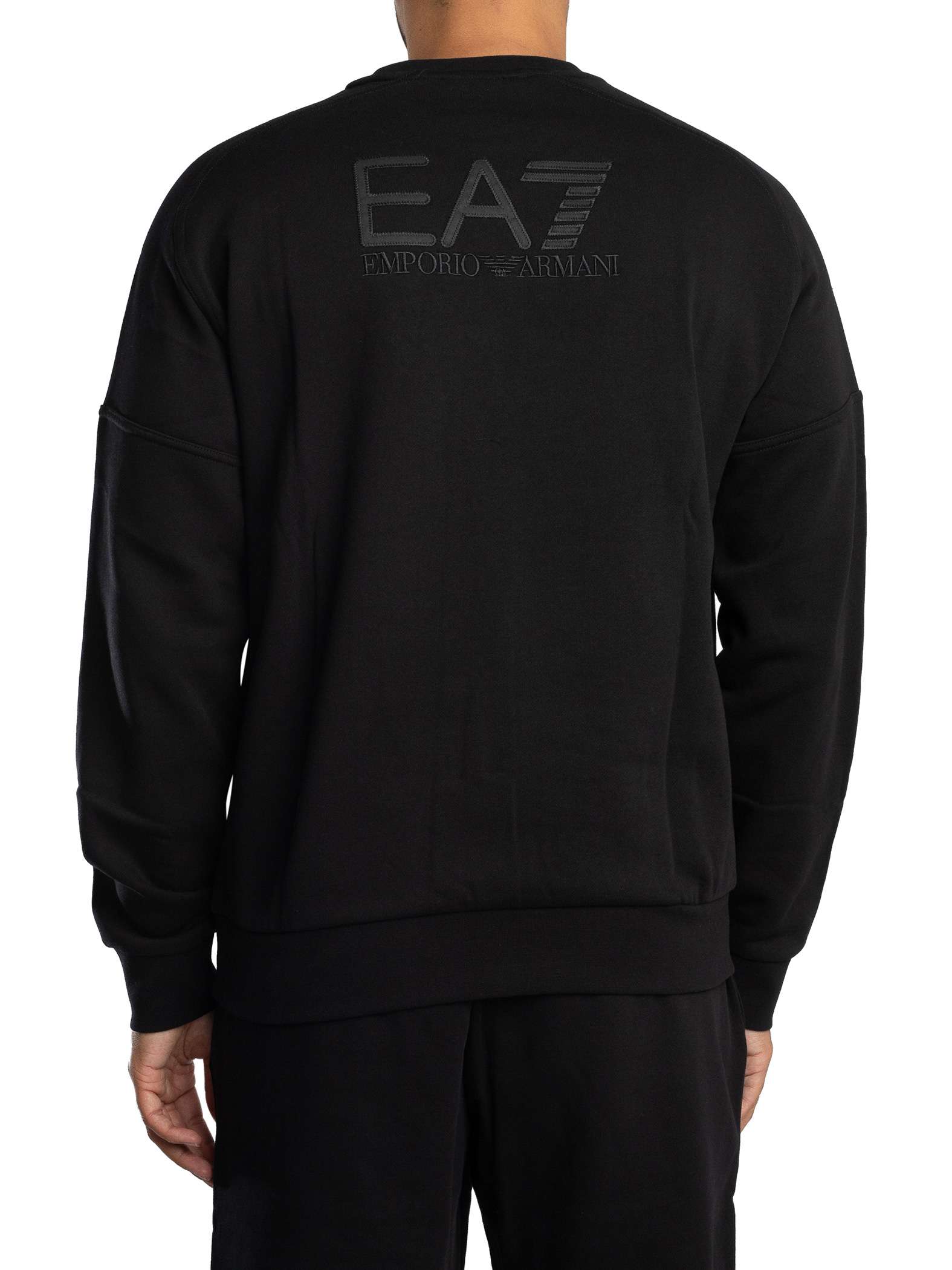 The crew-neck sweatshirt features a minimalist EA7 logo on the chest for subtle branding, while the matching joggers come complete with an adjustable drawstring waist, ribbed cuffs, and dual side pockets for everyday practicality. Designed with a modern silhouette and monochrome detailing, this tracksuit delivers understated luxury and a versatile athletic aesthetic that transitions seamlessly from the gym to the street.