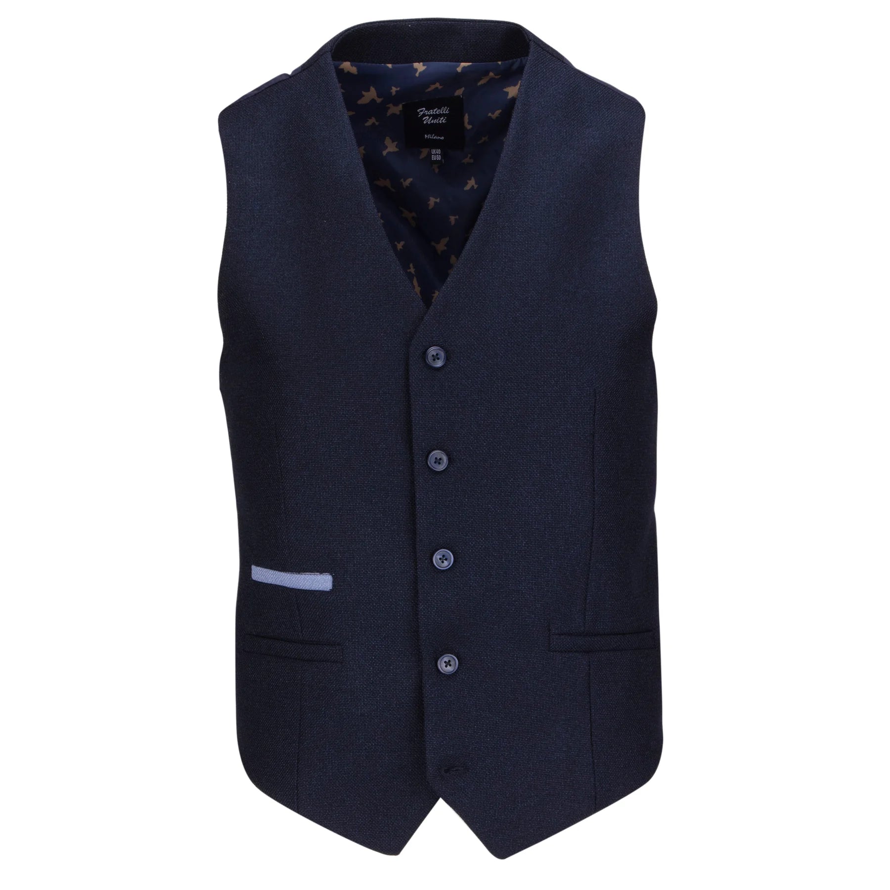 The navy color exudes timeless appeal, while the contrast jacket pocket welts add a subtle yet distinctive touch, making a statement without overpowering the look. Mix and match a different colour waistcoat from this range to give an individual look; Perfect for any occasion, from formal events to casual outings.
