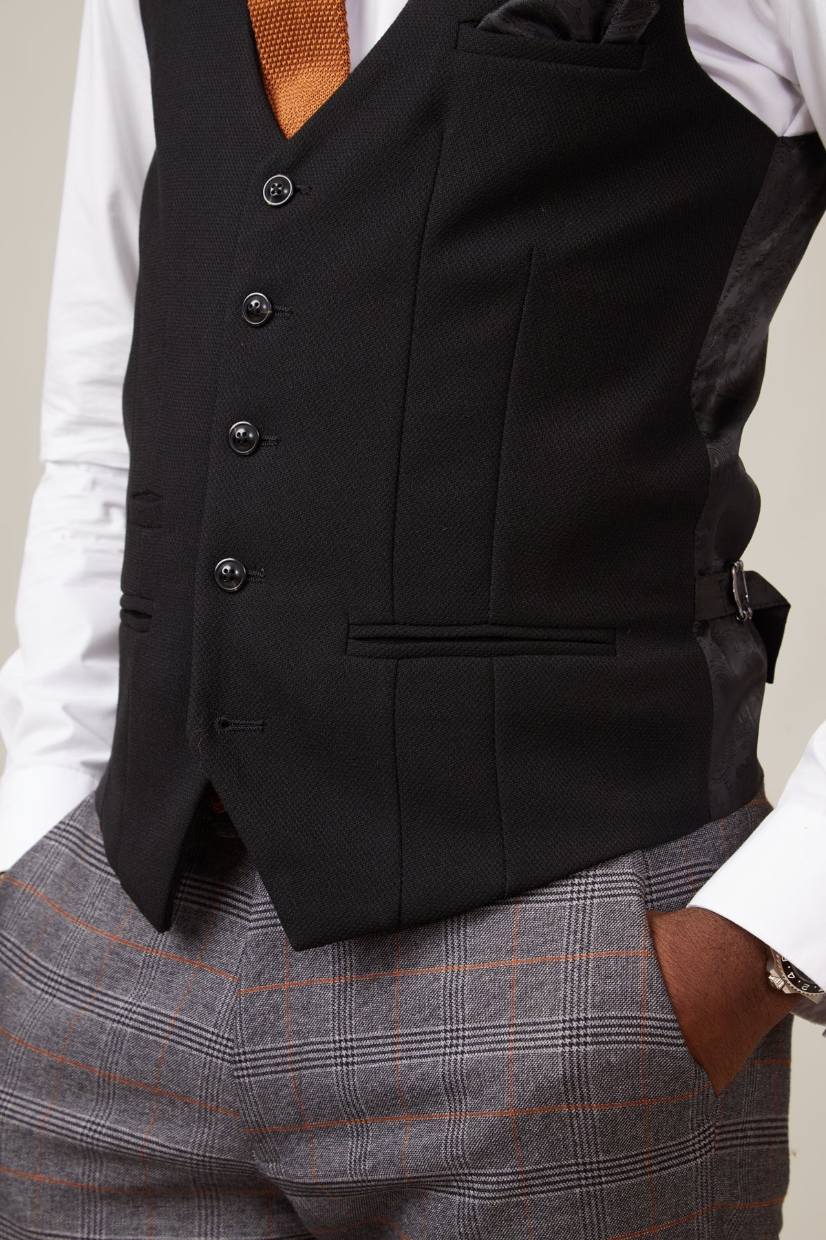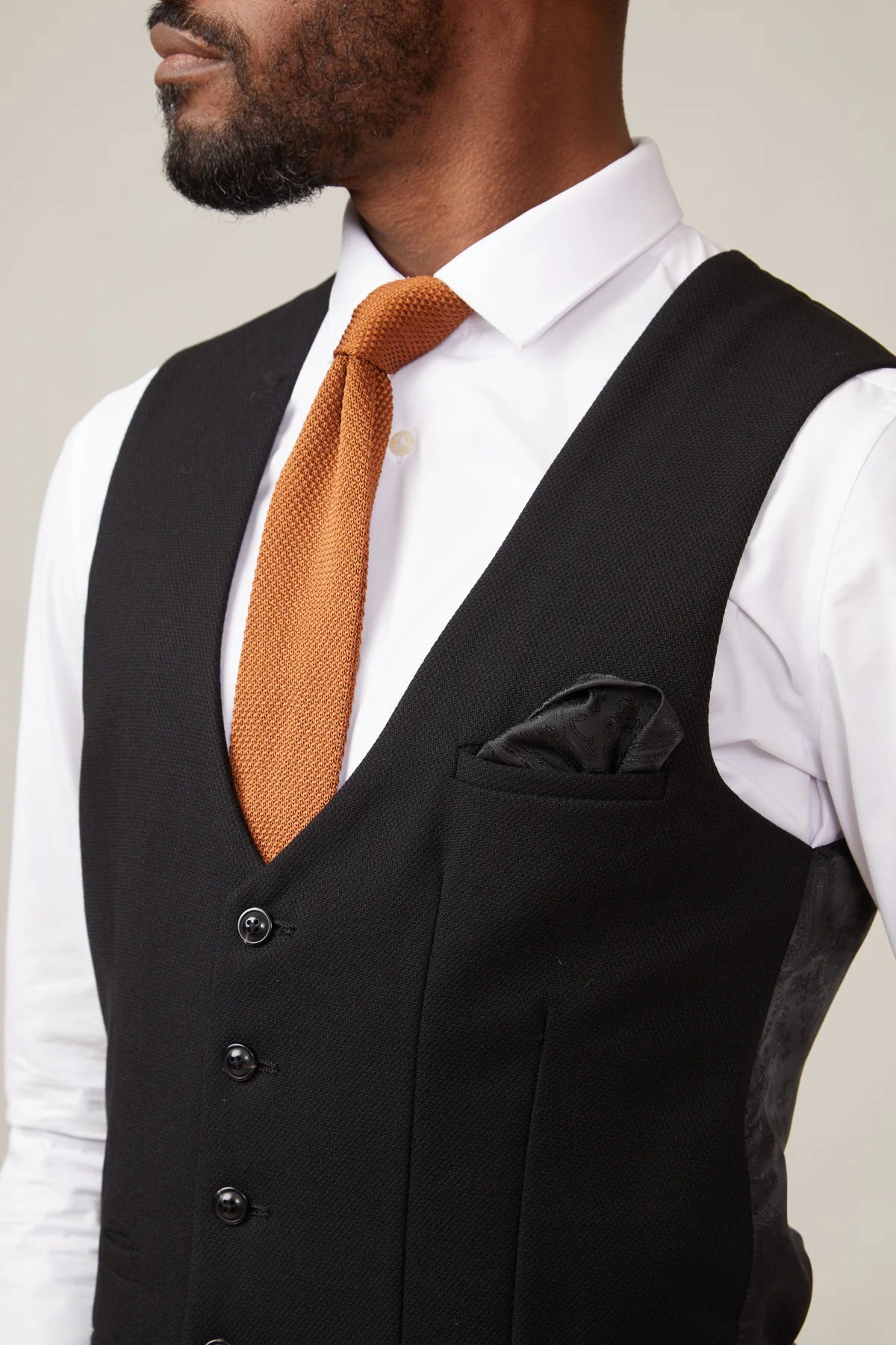 Keep things classic with this Kelvin waistcoat. A sophisticated and versatile black waistcoat is one that every man needs in his collection, and this textured design is a cut above the rest.