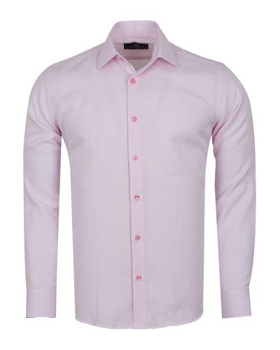 Makrom Textured French Cuffed Pink Shirt