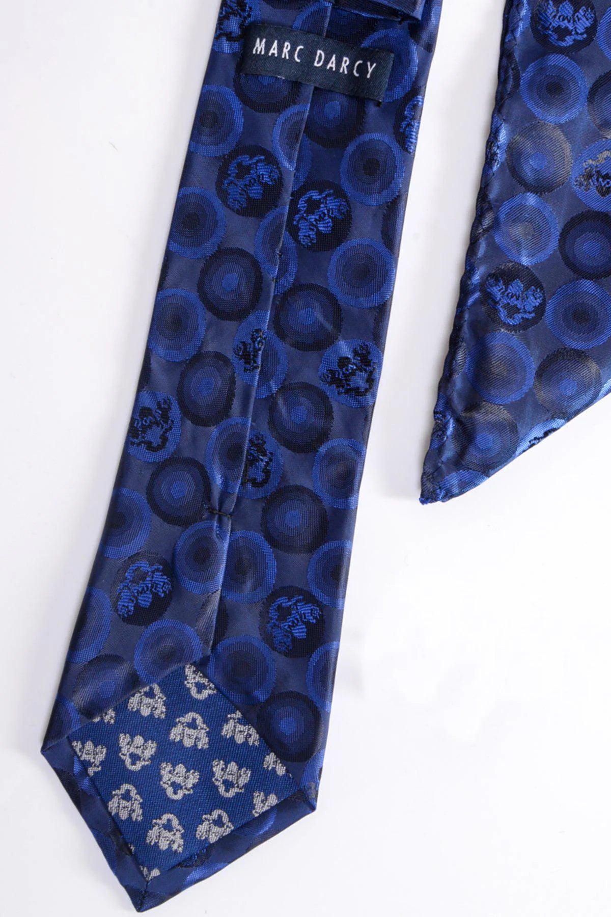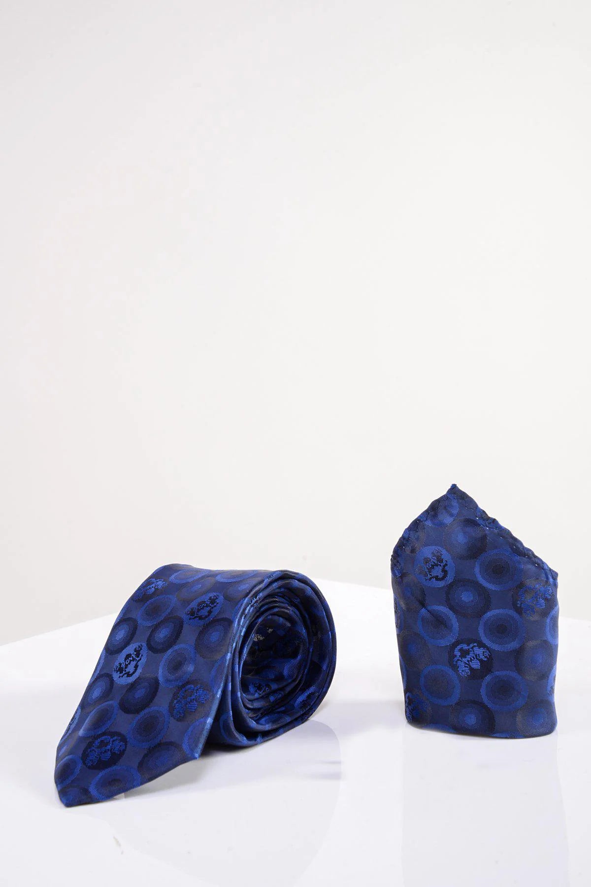 In a multi tonal navy hue, this formal tie set will go with a variety of suit and shirt combinations. With its bespoke MD circle pattern and traditional design, it is made to add a premium look to any occasion look.