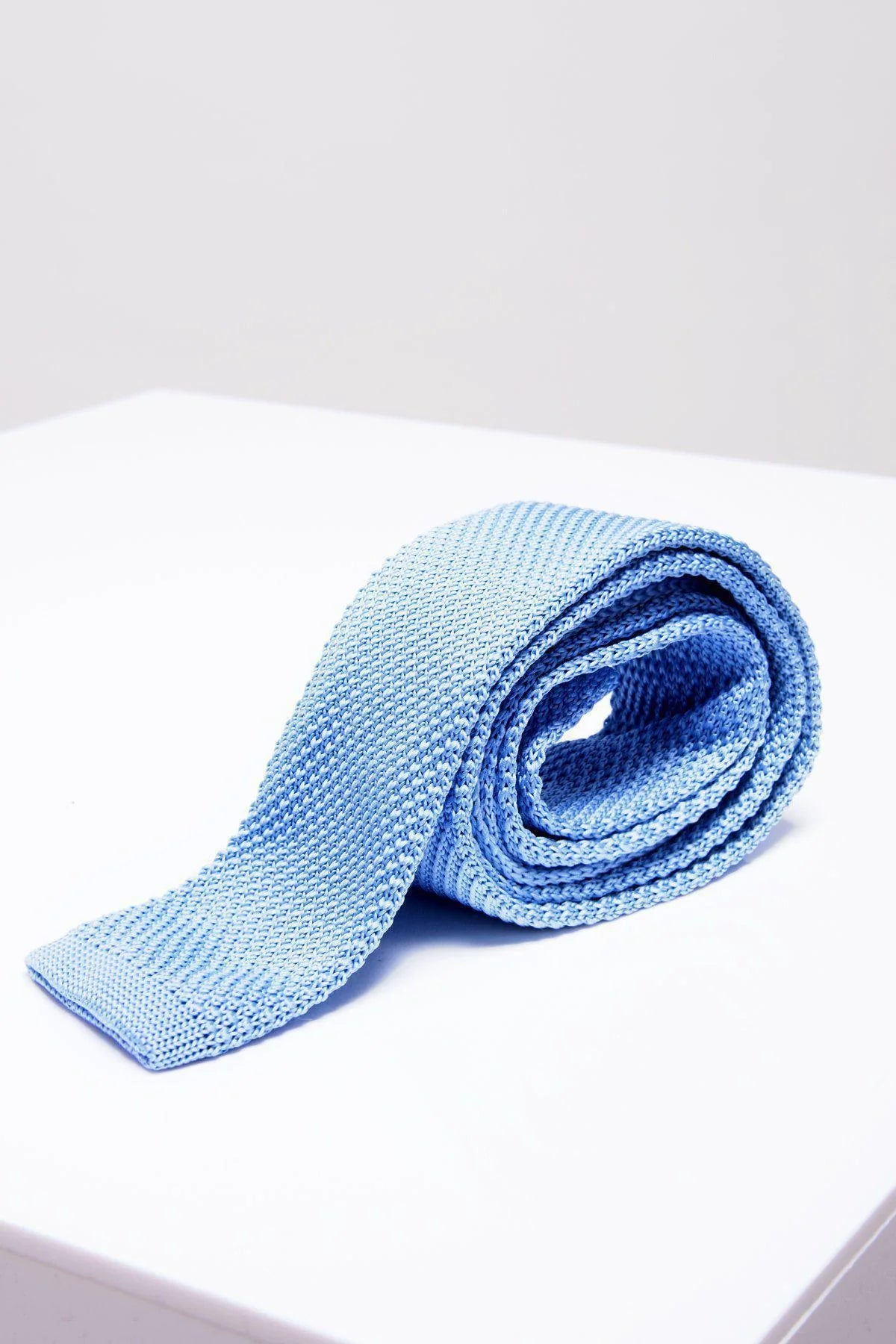 Welcome to spring/summer season with this sky blue knitted tie. In a modern textured design this unique style will be sure to make an impression and the lightweight, unrestrictive fabric will keep you comfortable throughout the day. Team with a strong navy to keep the blue theme and create a head-turning spring look.