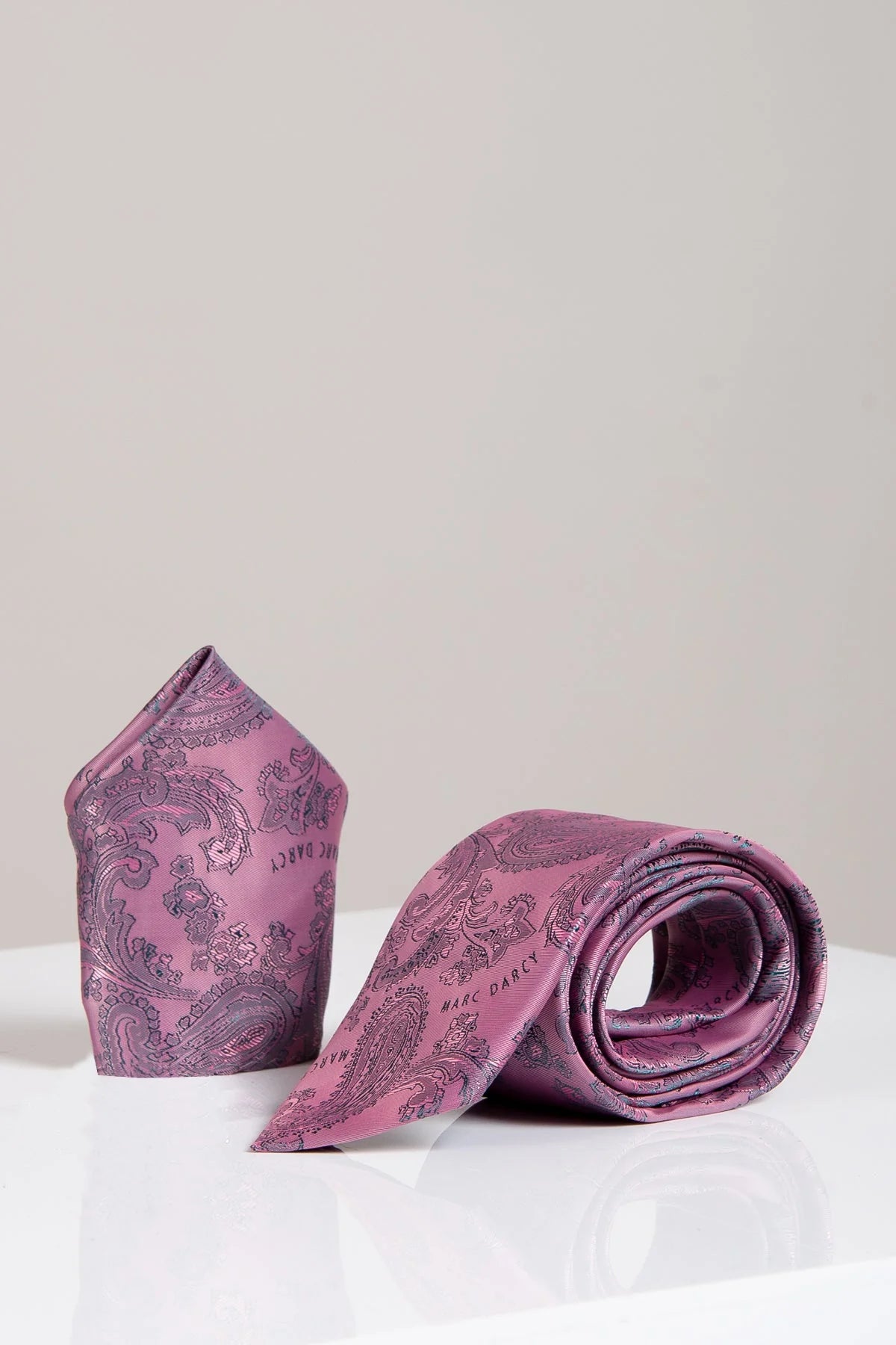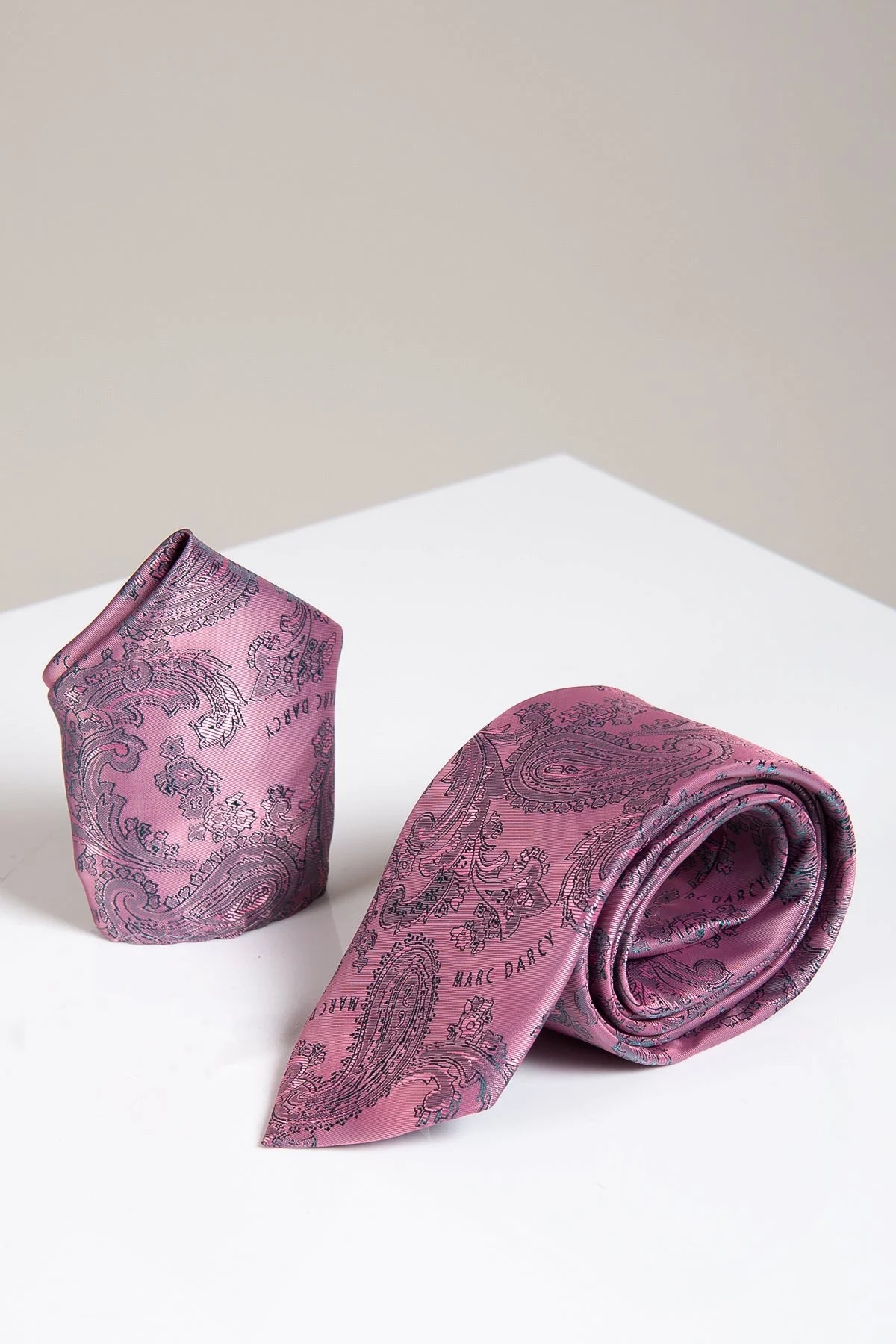 Marc Darcy Paisley - Pink Paisley Tie and Pocket Square Set