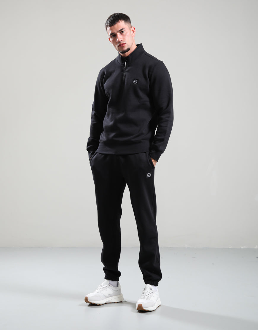 The Marshall Artist Marchio 1/4 Zip Sweatshirt in Black is a versatile layering piece blending casual comfort with streetwear styling. Made from an 80% cotton and 20% polyester blend (320 GSM), it offers a soft, durable feel while maintaining a structured silhouette.