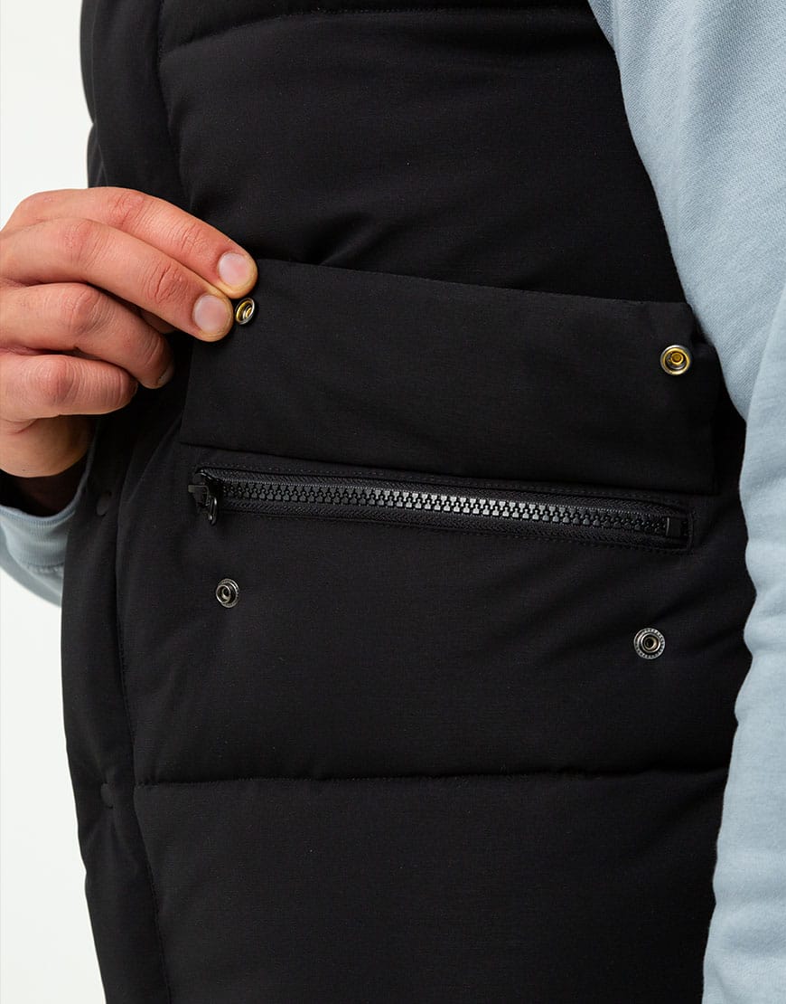 Constructed from 100% polyester shell and fill. Features include a padded hood and front placket with concealed zip closure. Snap closure, lower front pockets. Finished with micro Siren branding to front chest.