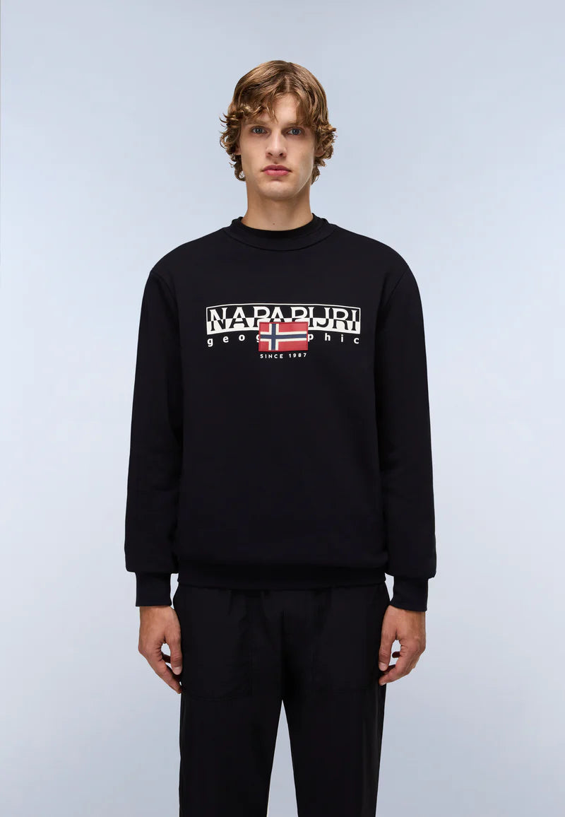 Stay warm and stylish with the Napapijri Aylmer Winter Sweatshirt in Black. Crafted from a soft 90% cotton, 10% polyester blend, this sweatshirt provides comfort, breathability, and lightweight warmth for everyday wear.