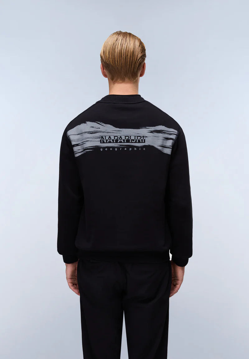 The Napapijri Back Graphic Sweatshirt in Black delivers urban streetwear style with effortless comfort. Crafted from a cotton-polyester blend (90% cotton, 10% polyester), this relaxed-fit crew neck sweatshirt provides warmth and softness for everyday wear.