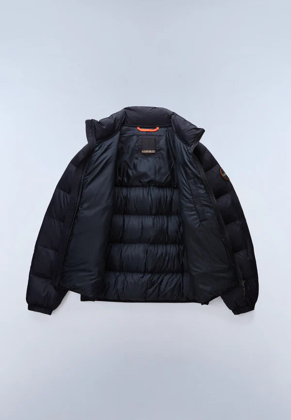 The Napapijri Molveno Puffer Jacket in Black blends urban style with technical performance, making it an essential outerwear piece for colder months. Crafted from water-resistant fabric and filled with lightweight THERMOFIBRE® insulation, this jacket provides exceptional warmth while remaining light and easy to layer.
