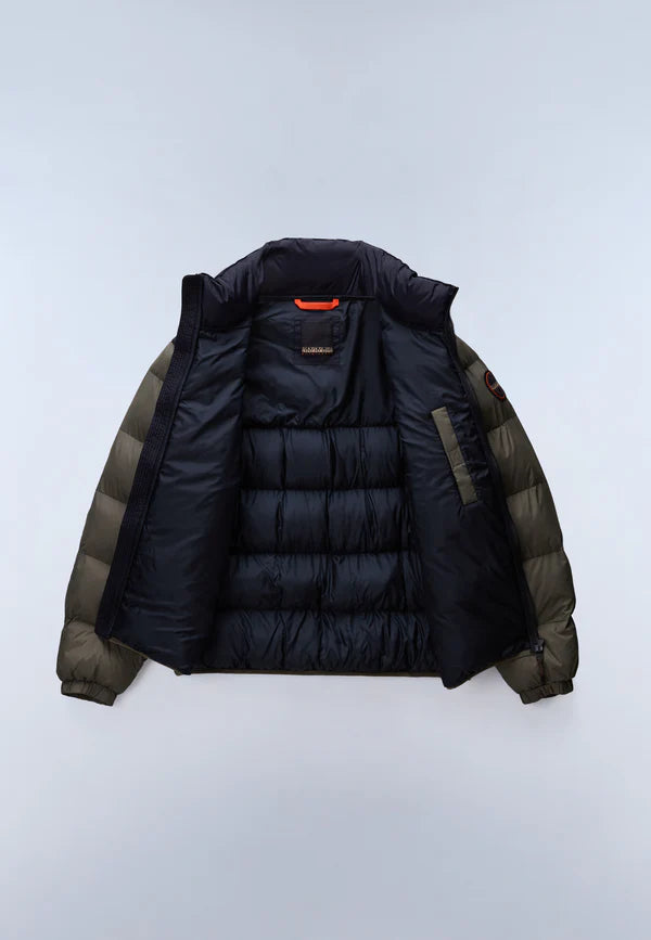 The Napapijri Molveno Puffer Jacket in Tea Leaf combines modern design with advanced performance features, making it the ultimate choice for cold-weather layering. Crafted from water-resistant fabric and featuring lightweight THERMOFIBRE® insulation, this jacket ensures high thermal warmth without the bulk of traditional down.
