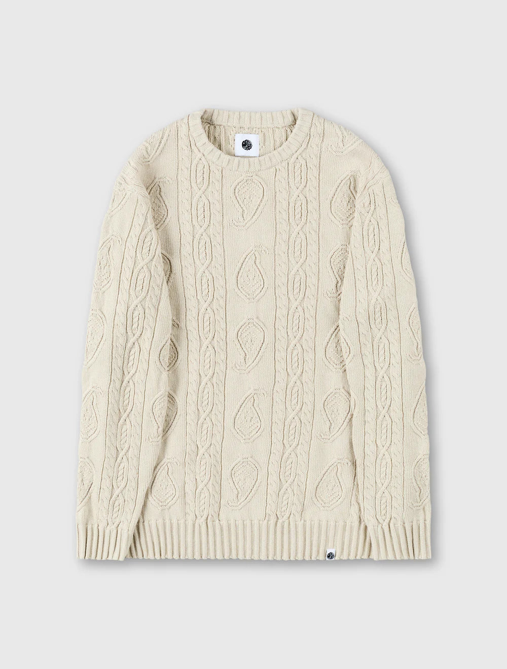 The Pretty Green Marylebone Paisley Cable Knit Jumper in Stone combines heritage-inspired knitwear with contemporary style. Crafted from 100% pure cotton, it features an all-over paisley cable knit pattern for texture and character.