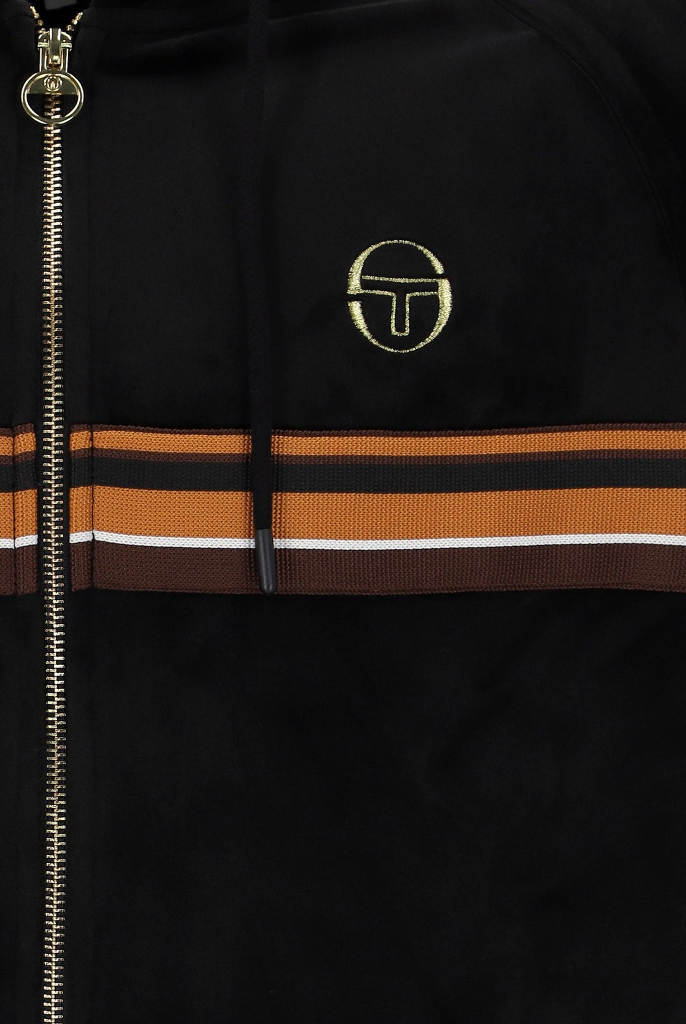 Refined comfort meets retro sportswear in the Sergio Tacchini Albi Velour Zip Hoodie in Black / Gold. Crafted from luxurious soft-touch velour fabric, this hoodie delivers a perfect balance of premium feel, warmth, and effortless streetwear appeal.