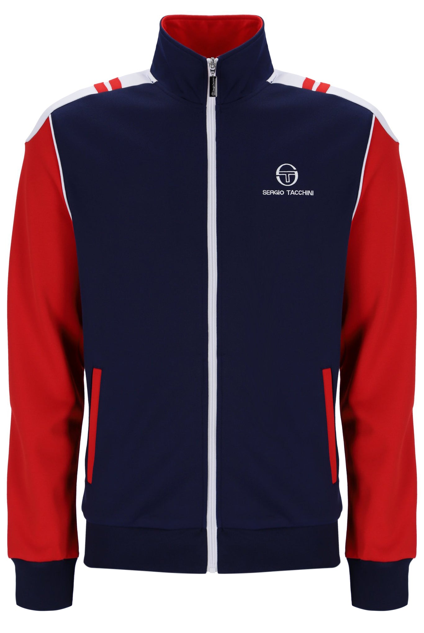 Elevate your streetwear game with the Sergio Tacchini Drive Track Top, a modern take on a classic sportswear design. Designed for comfort and style, this jacket features signature shoulder stripes with refined seam detailing, a full zip front, and contrasting colour accents for a standout look. The athletic funnel neckline, cuffed sleeves, and hem ensure a secure fit, while two side pockets offer practicality for everyday wear. Made from durable 100% polyester and finished with the iconic ST embroidered branding, this track top is both timeless and versatile.