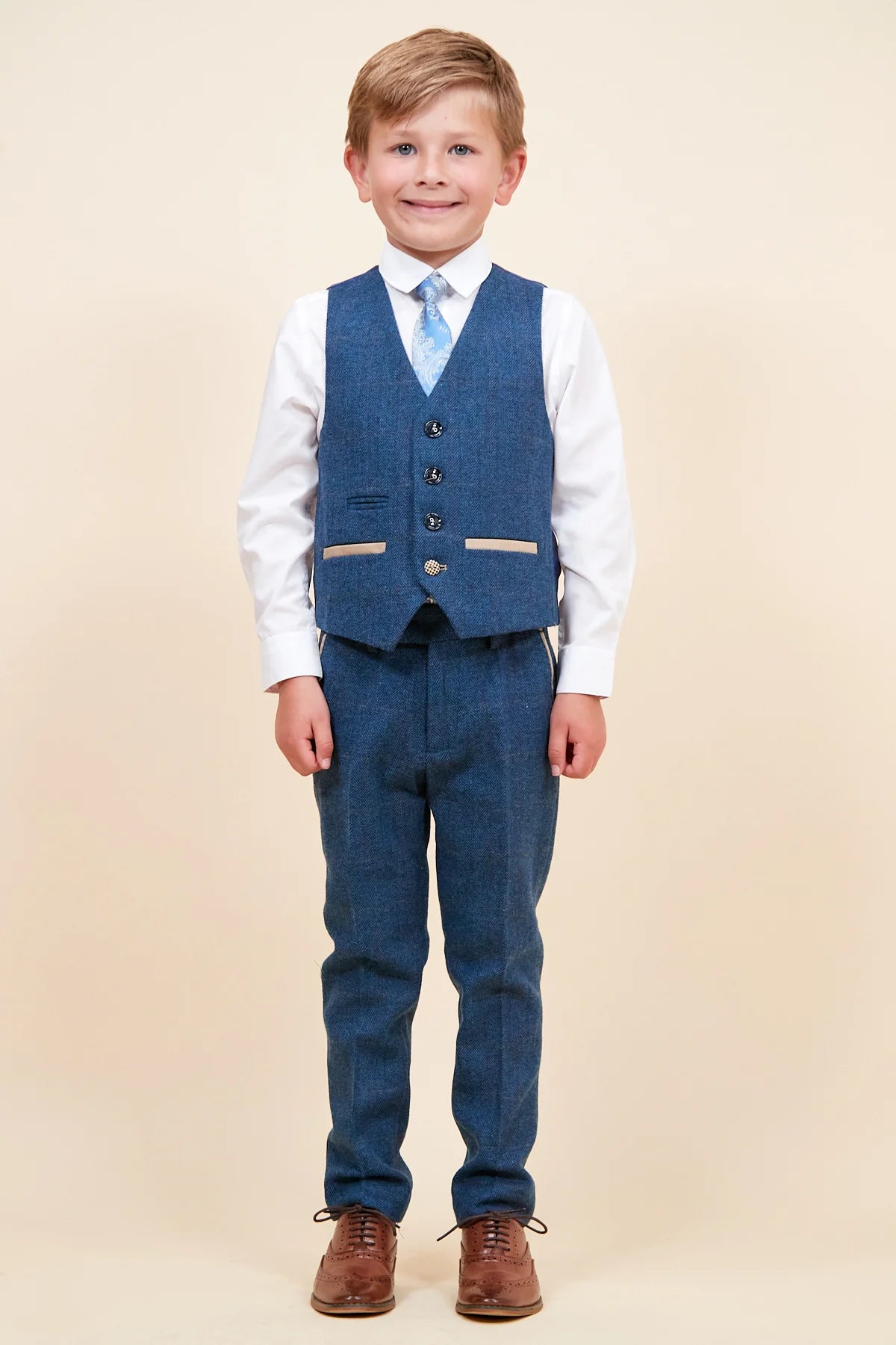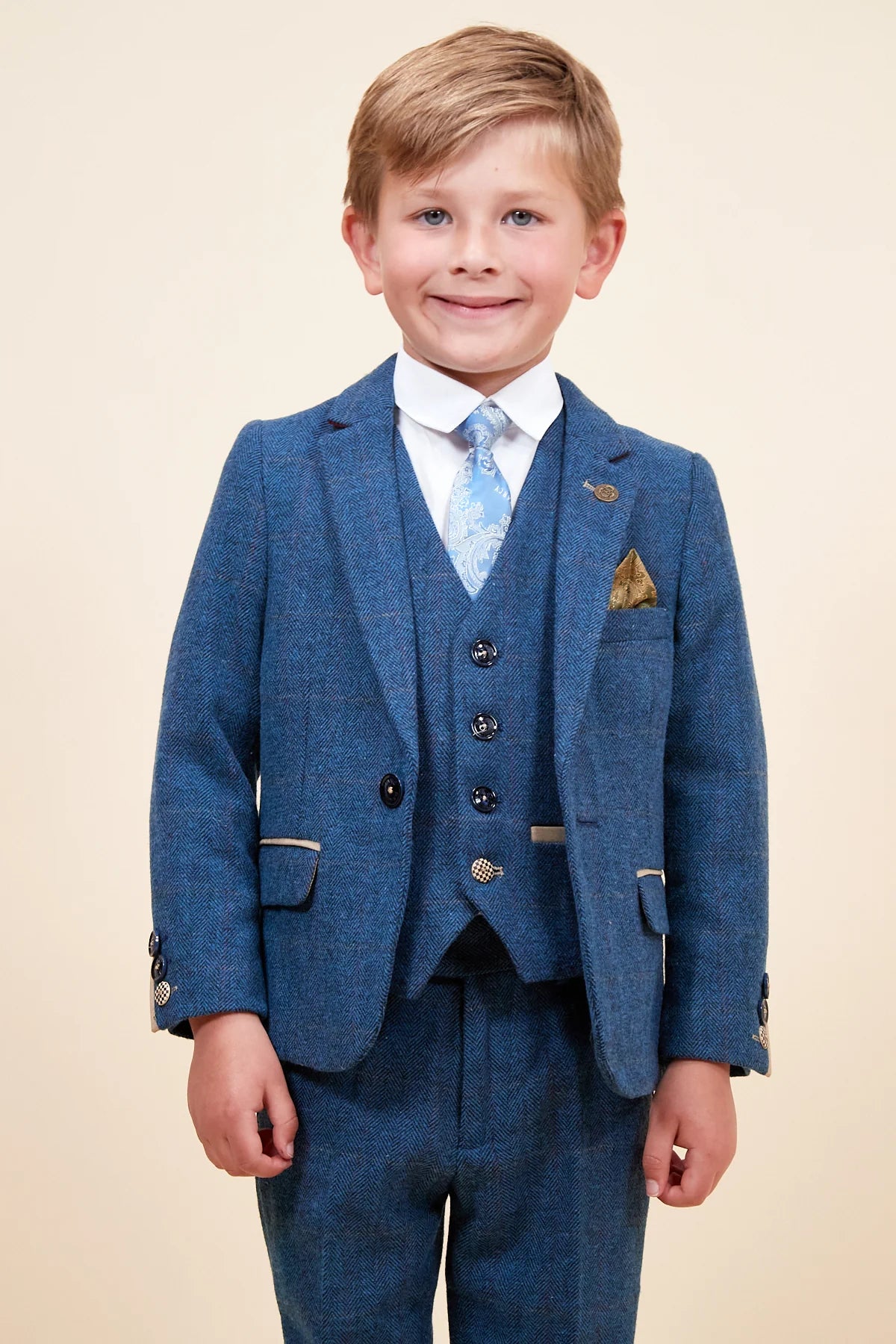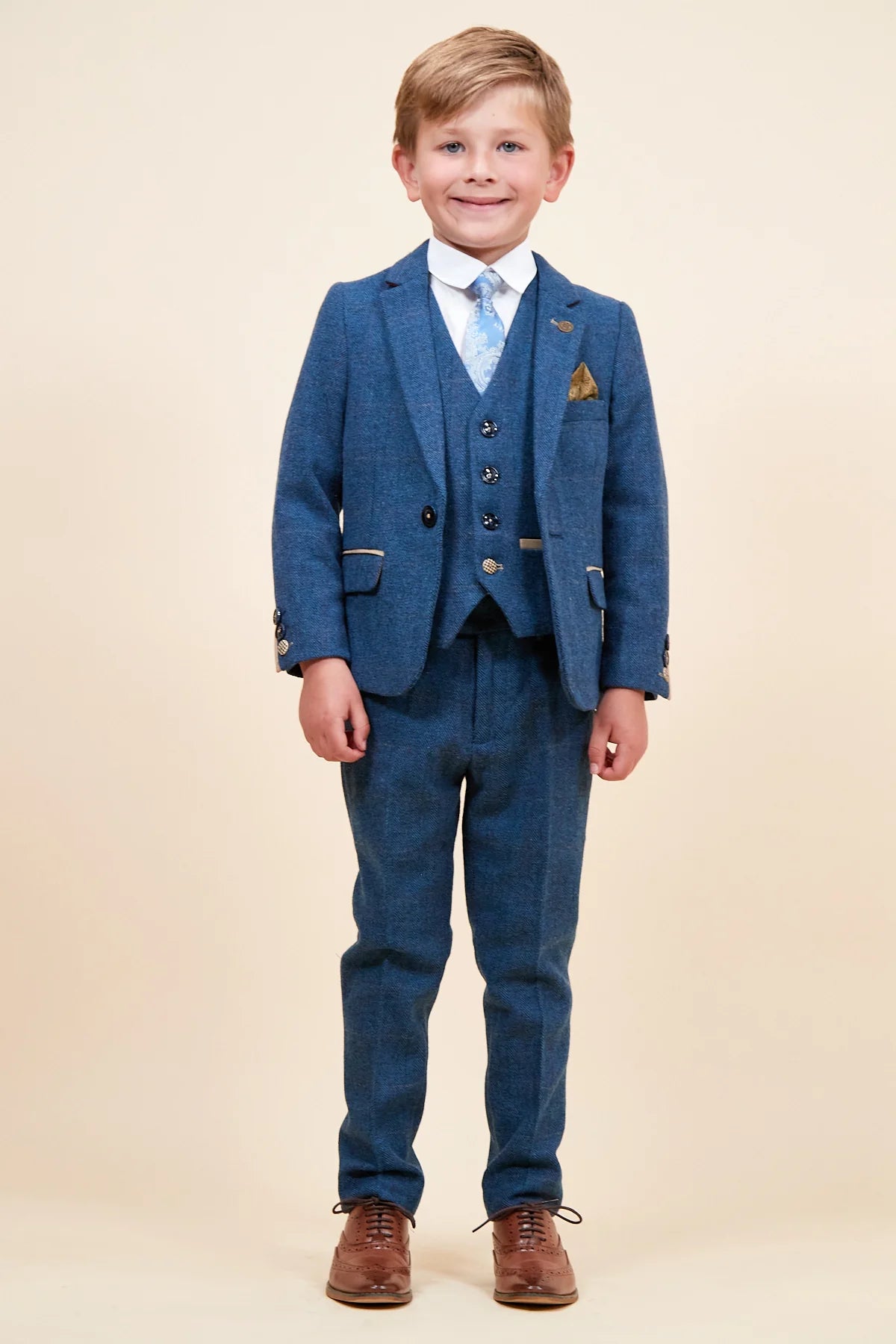 The perfect accompaniment to the men's Dion suit, this adorable children's version will stand out for sure. It has been created with meticulous craftsmanship using a herringbone weave, just like the men's but a mini replica. With handy adjuster straps in the trousers for the perfect fit, this heritage three piece may just steal the show.