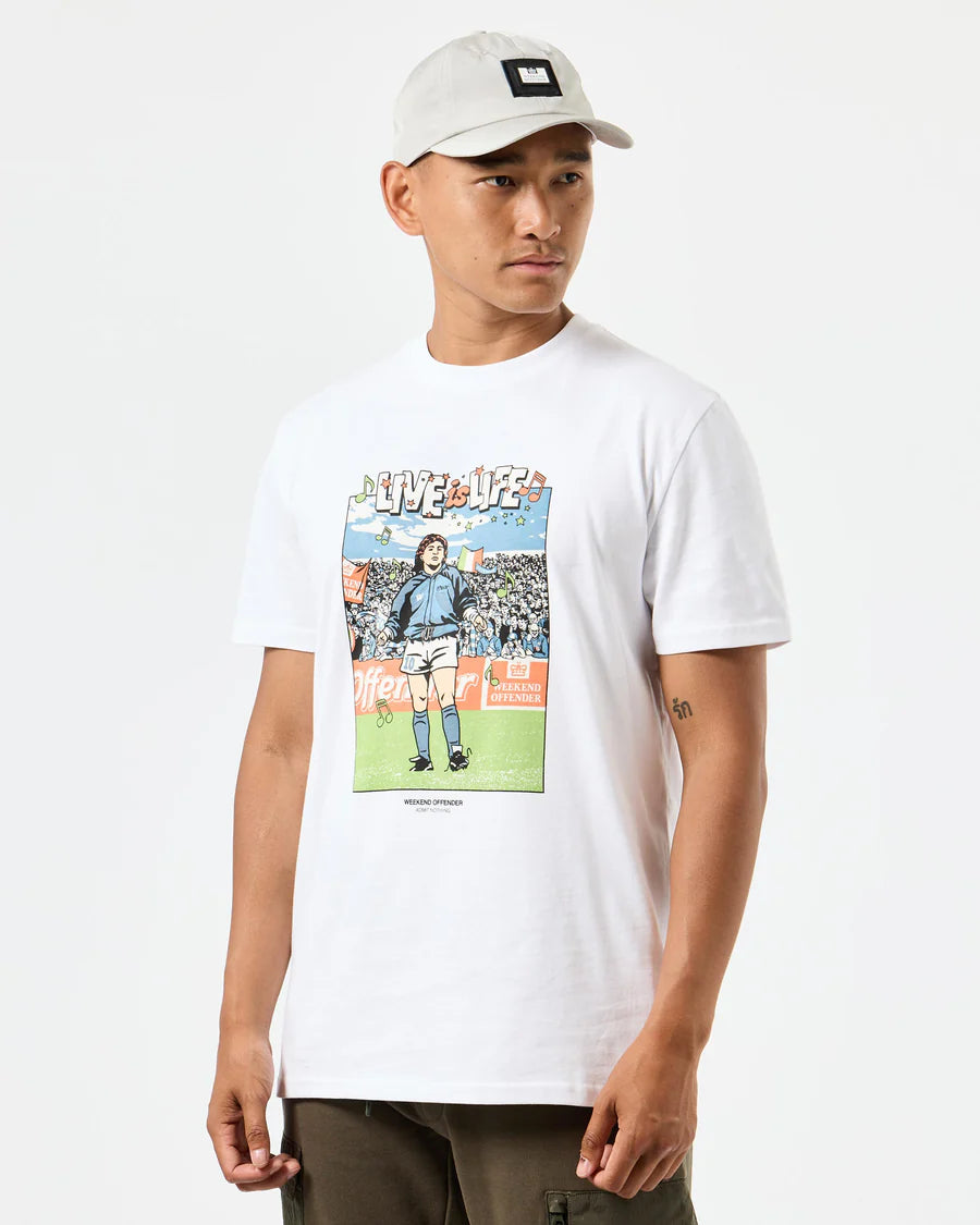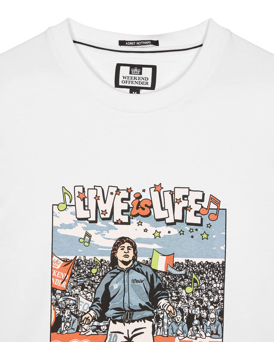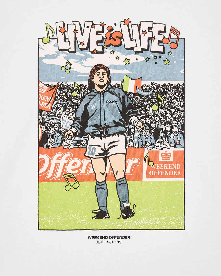 Graphic Tee featuring a graphic inspired by Diego’s famous pre-match warm up from Napoli’s UEFA Cup Semi Final second-leg tie with Bayern Munich to the soundtrack of Life Is Life.