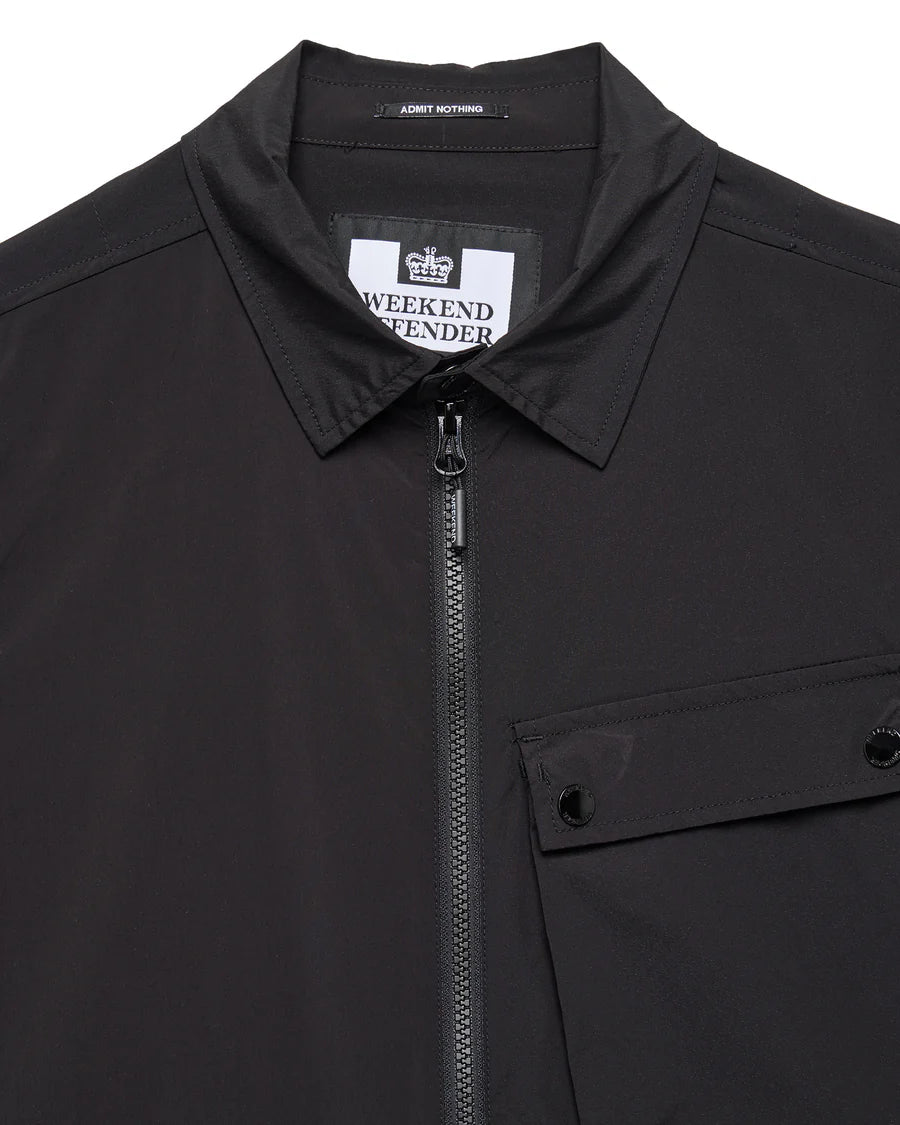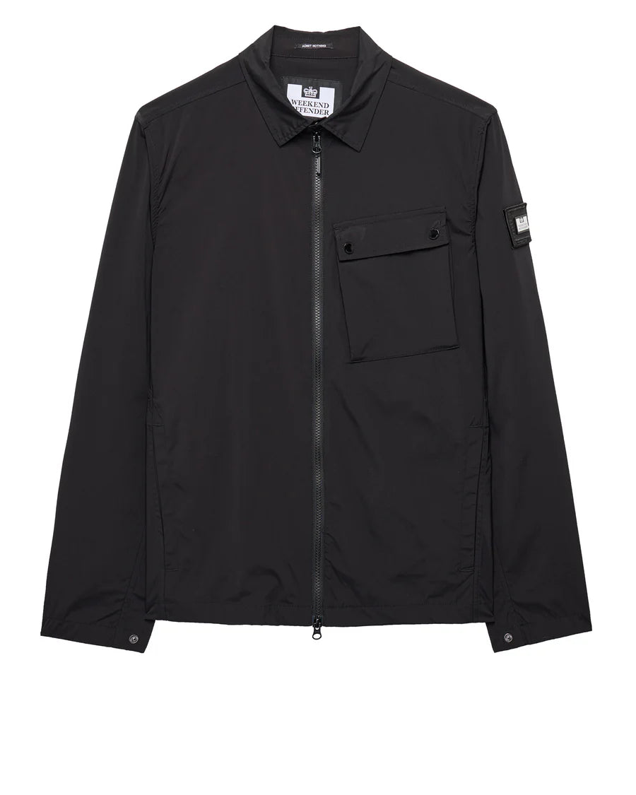 Technical overshirt made from superfine weave technical 2-way stretch 94% Nylon 6% Elastane lightweight fabric.